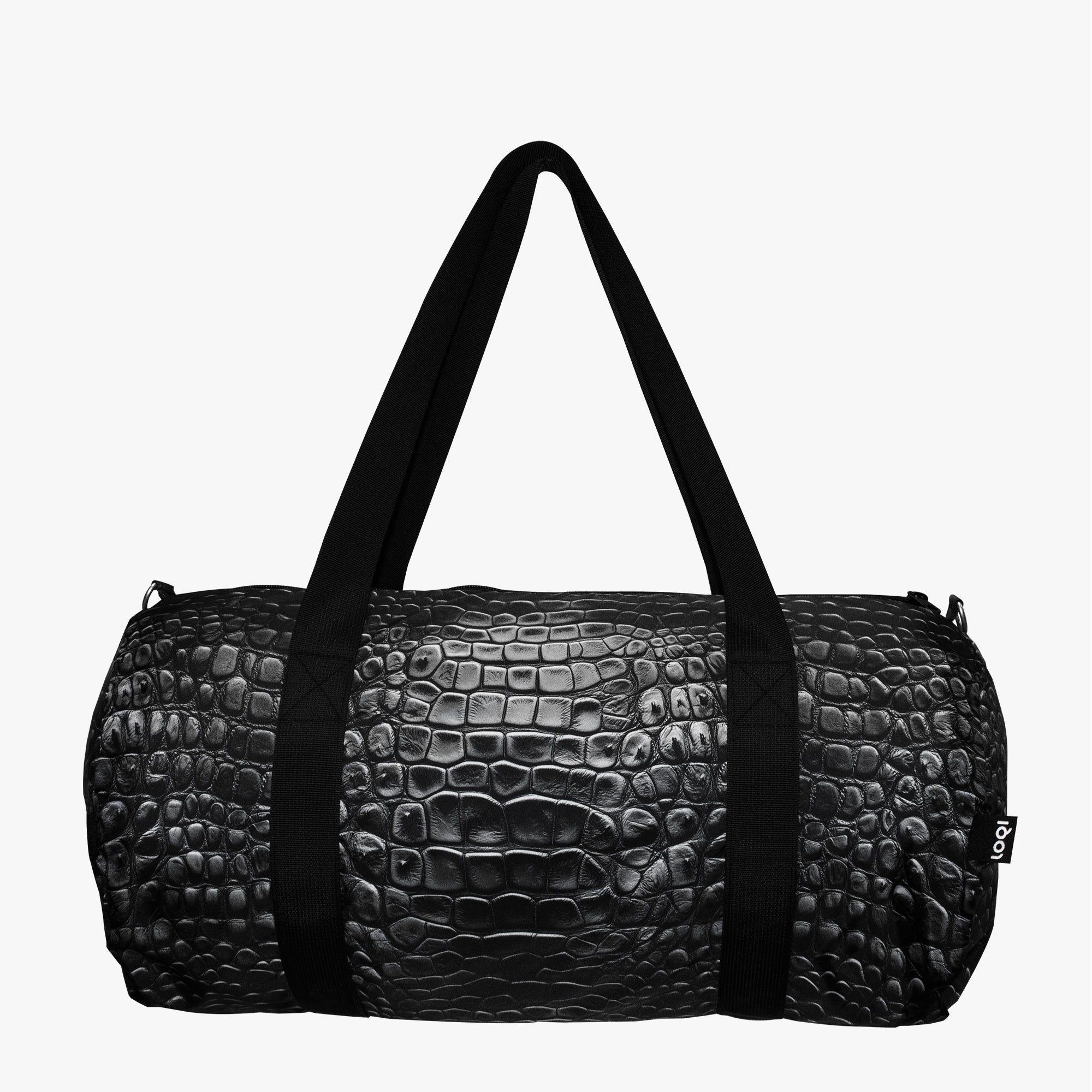 Sleek, sculptural, and full of texture. The black crocodile recycled weekender bag captures the look of embossed leather in an ultra-light, foldable form. Feather-light and foldable, it delivers a high fashion attitude without the heaviness.